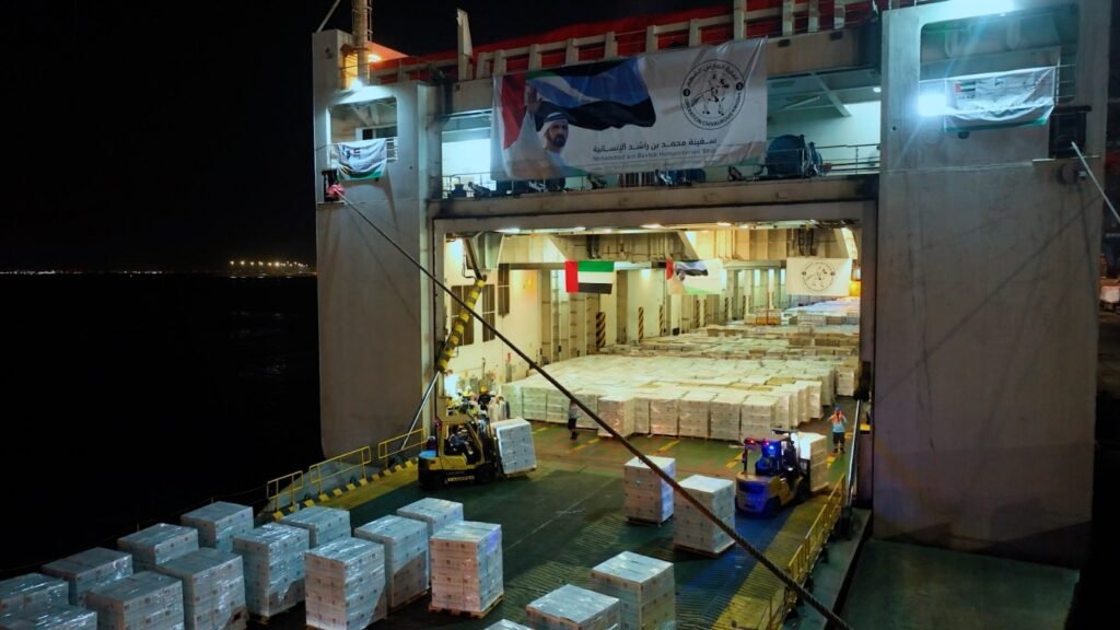 تنفيذاً لتوجيهات صاحب السمو الشيخ محمد بن زايد آل نهيان، رئيس الدولة «حفظه الله»، دشّنت دولة الإمارات العربية المتحدة إبحار سفينة محمد بن راشد الإنسانية من ميناء خليفة، وذلك ضمن عملية «الفارس الشهم 3»، في إطار الجهود الإنسانية المتواصلة التي تبذلها الدولة لدعم الأشقاء في قطاع غزة، وتجسيداً لنهجها الراسخ في مدّ يد العون والإغاثة خلال الأزمات الإنسانية.