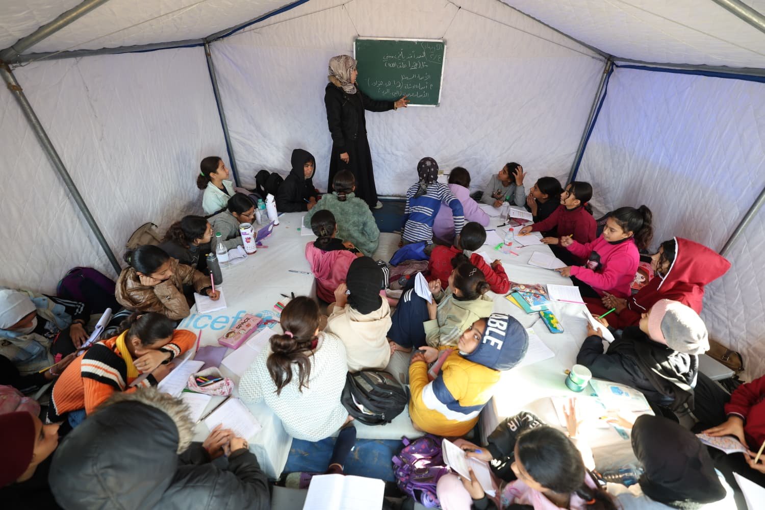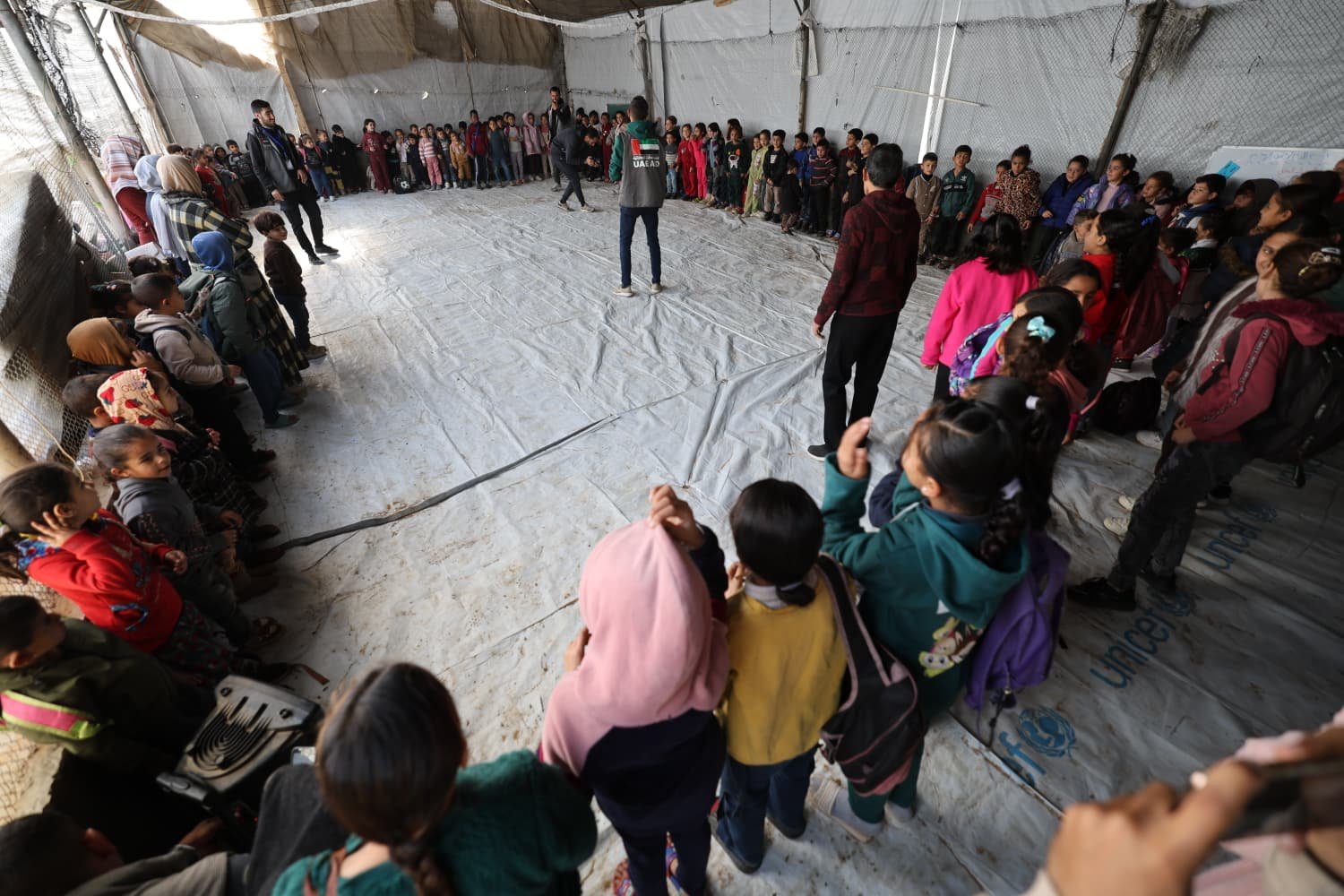 توزيع وجبات غذائية وتفريغ نفسي في مدرسة العز النموذجية